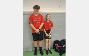 L'équipe composée de Célia et Allan (remplacant au pied levé Jade) a connu des fortunes diverses terminant à la 4e place de son groupe. Il faut surtout souligner la première compétition en championnat de Célia (minime1) dénotant un potentiel prometteur et une attitude dont devraient s'inspirer quelques adultes. Un grand merci à Allan pour sa bonne humeur et son esprit de solidarité.